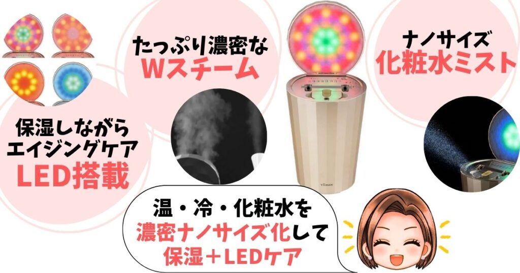 スチーマーの価格の差は「化粧水ミスト」や「LED」などの機能があるかどうかが大きいです。